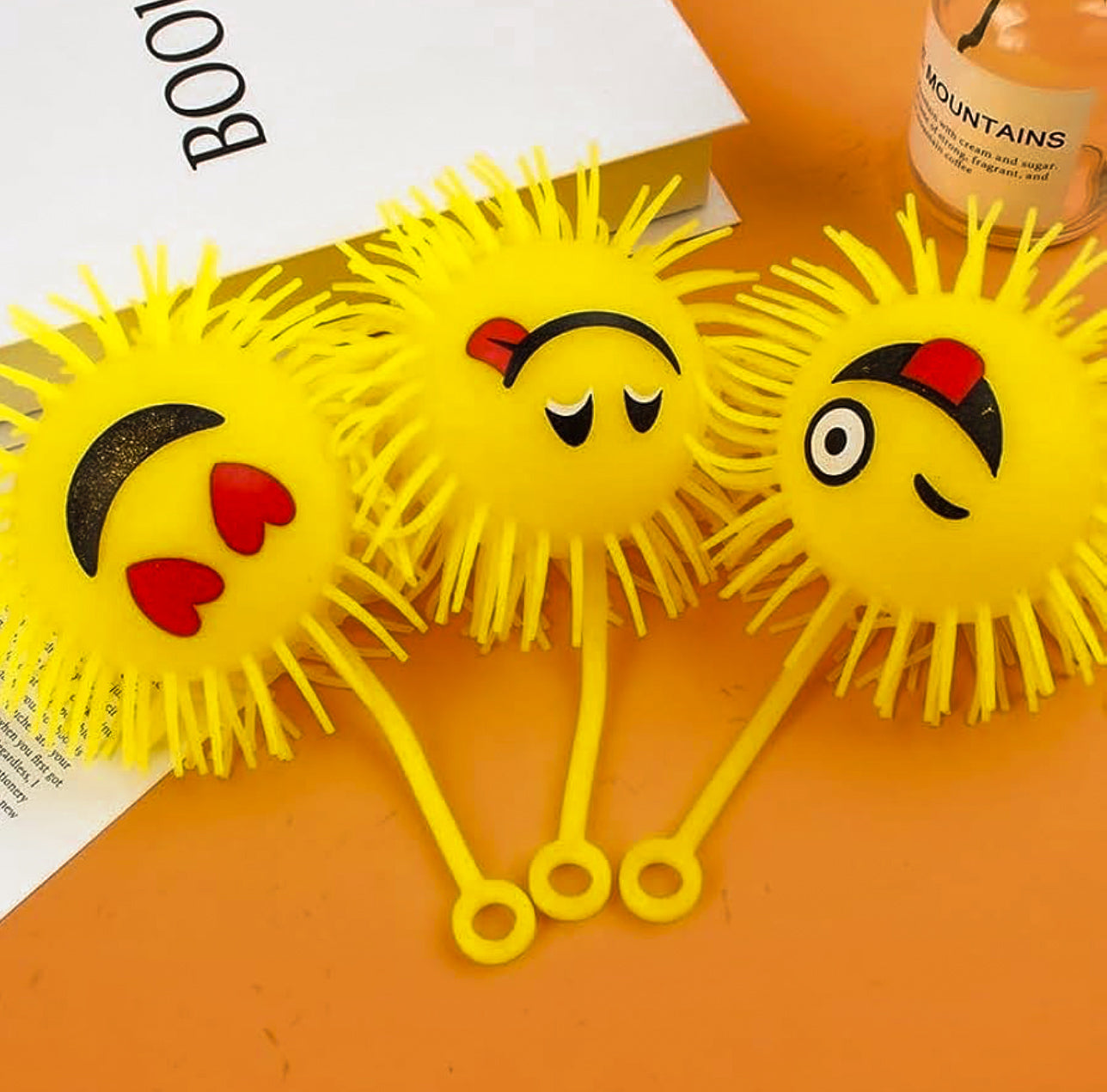 Meet the Bouncy Smiley Ball with a spiky surprise! This cheerful ball features a classic smiley face design combined with an exciting texture of soft spikes. Perfect for indoor or outdoor fun, it's a great way to bounce, throw, and giggle.