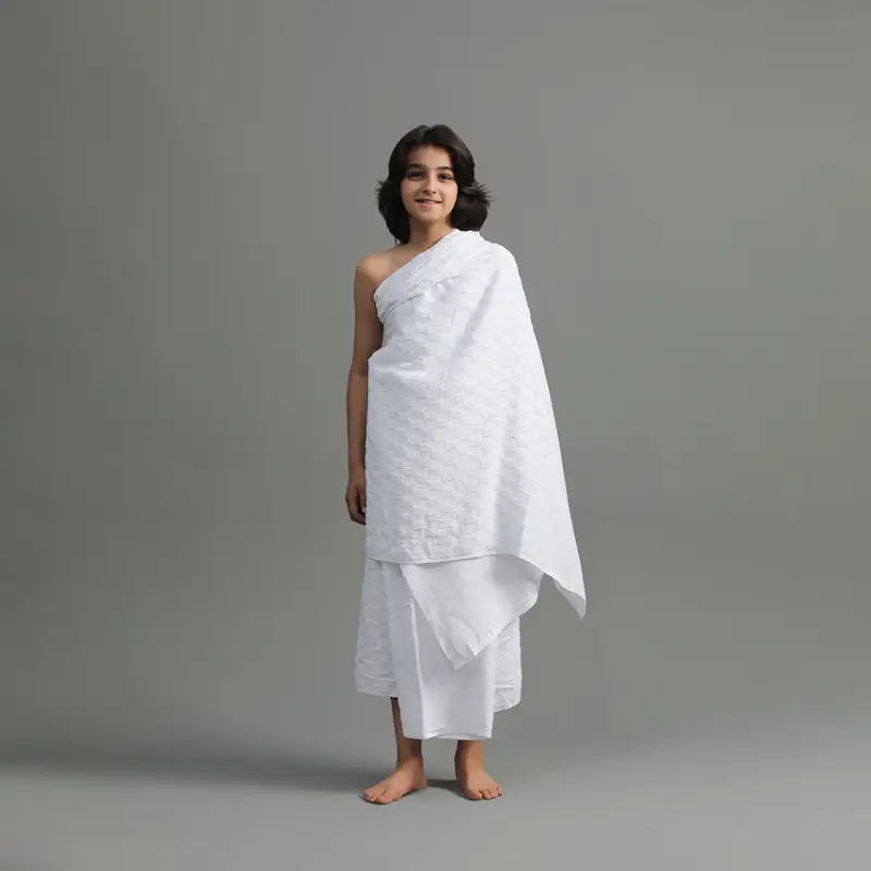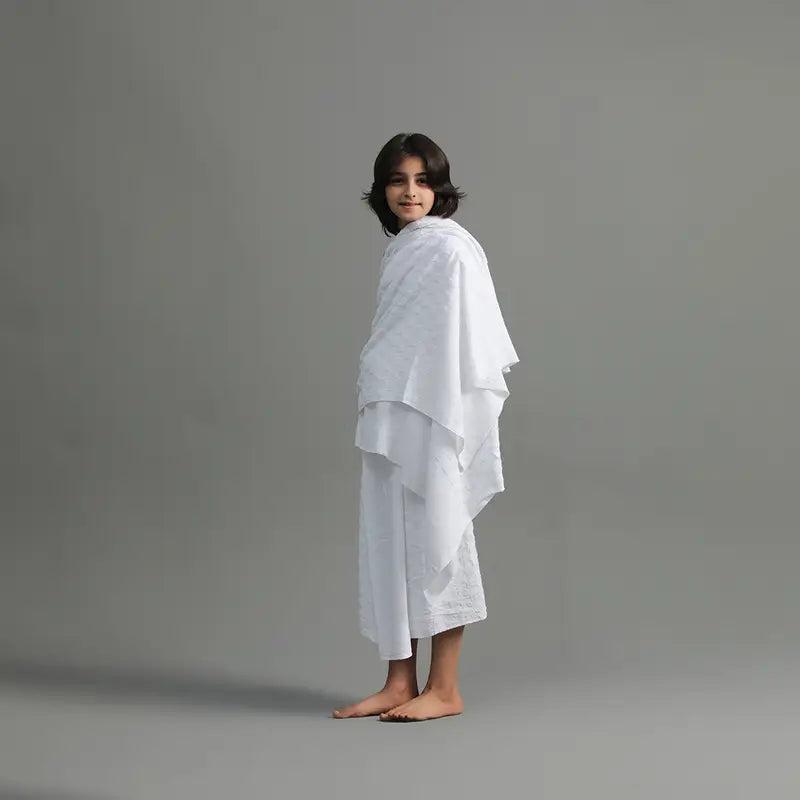 •Perfectly tailored for kids, this Ihram meets all requirements of the pilgrimage while ensuring ease and modesty.