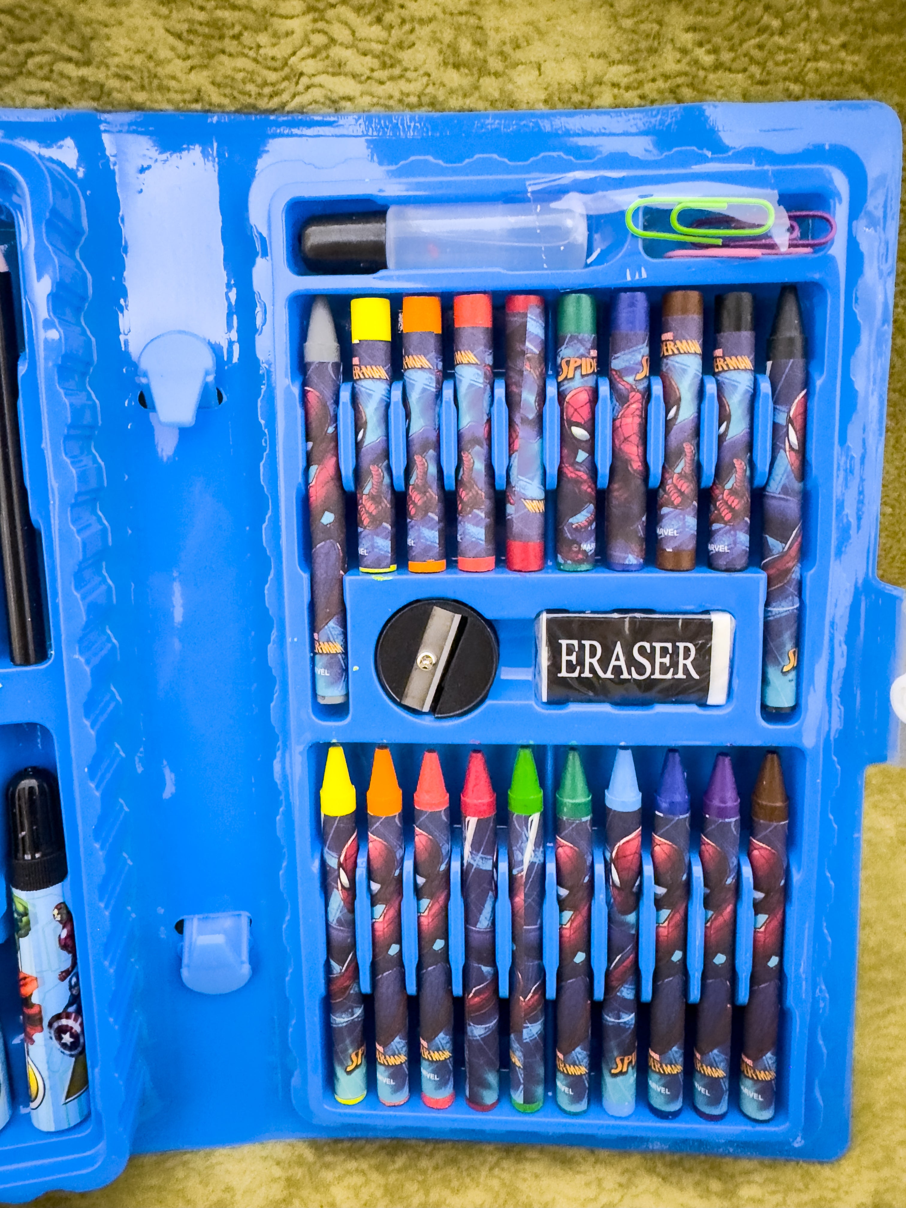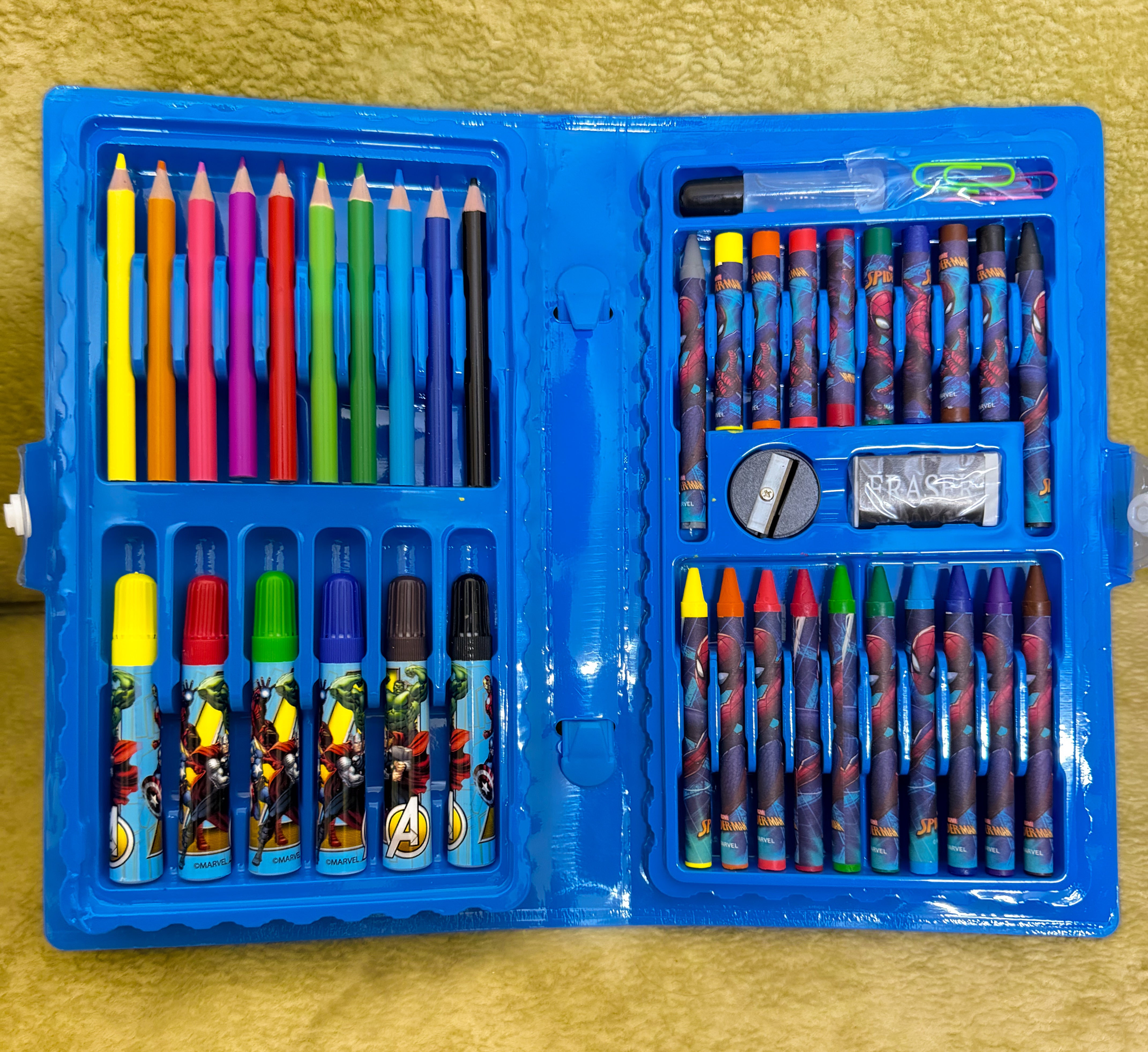 Become a superhero artist with our 42-piece Marvel Color Box! This incredible set features a vibrant collection of crayons, markers, and pencils, all inspired by your favorite Marvel characters. Bring your imagination to life with Iron Man, Spider-Man, Hulk, and more!